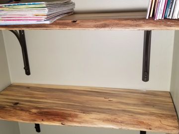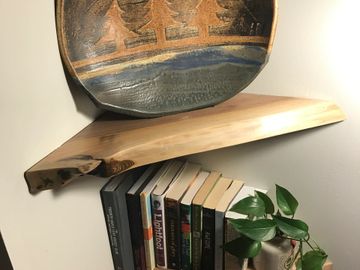 All live edge shelves are made from walnut, cherry, maple or pine. They can be stained or finished with a protective clear coat.