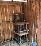 Legs and supports can either be a 'picnic table style' support with full 2x4 hemlock legs and braces or spruce or cedar legs with branch braces (see next picture).